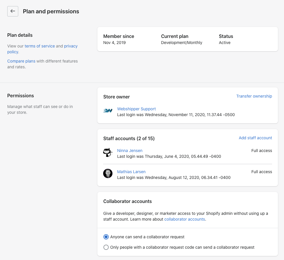 Shopify permite dar accesos limitados: